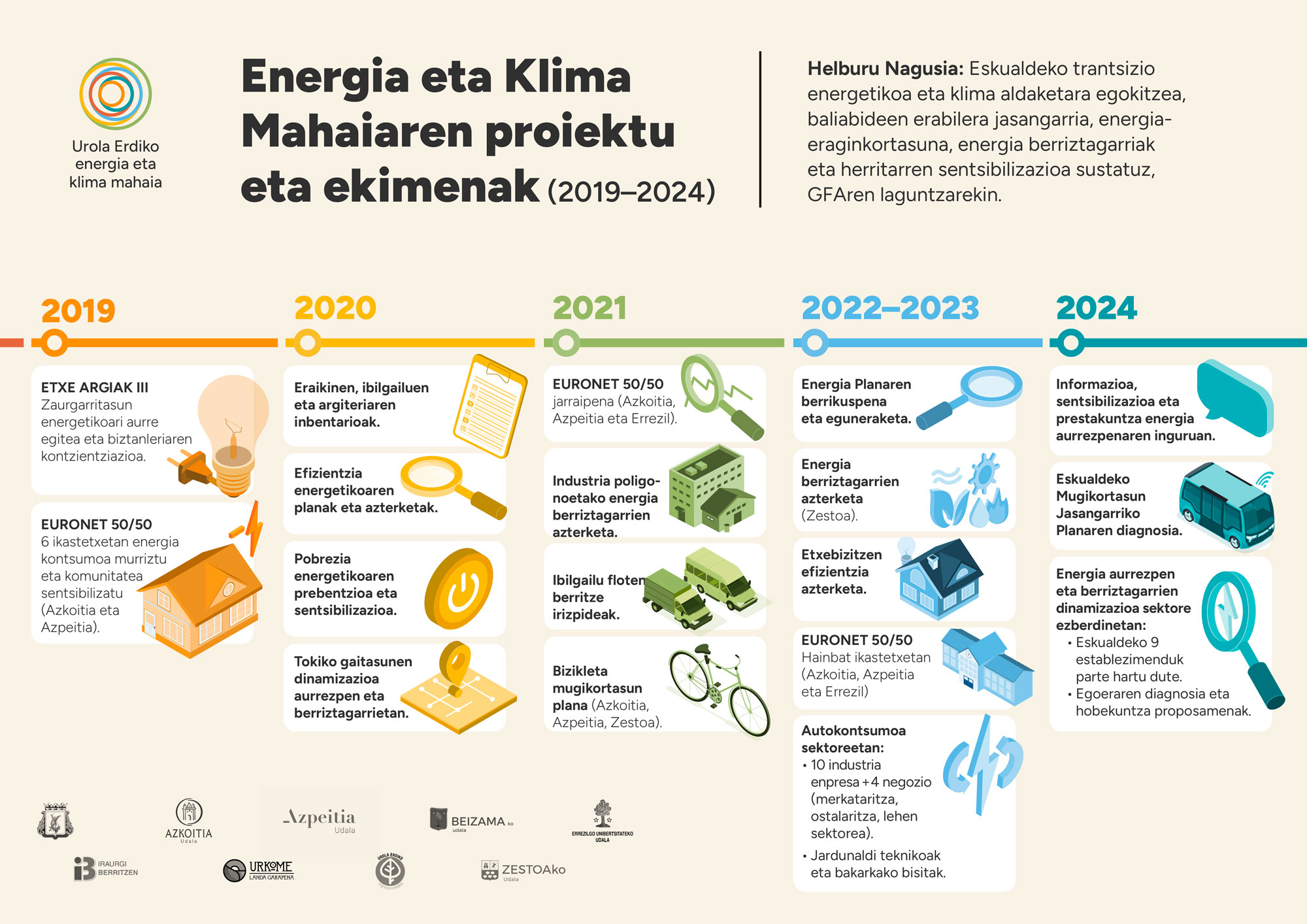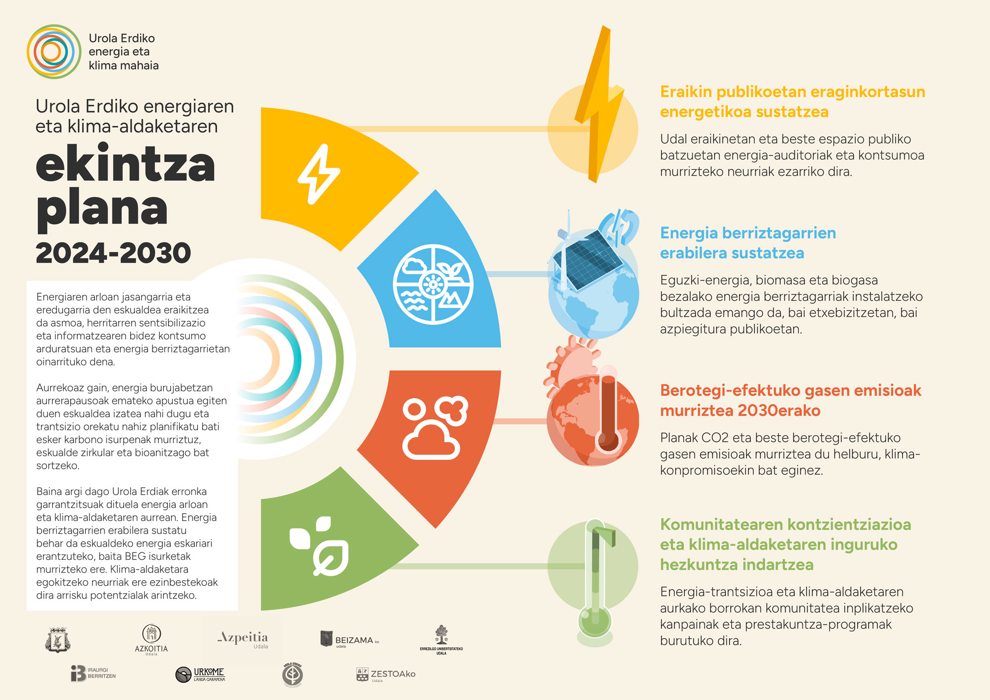 Hurrengo infografian Urola Erdiko energiaren eta klima-aldaketaren ekintza plana (2024-2030) aurkezten da, eskualde jasangarriagoa lortzeko helburuarekin.